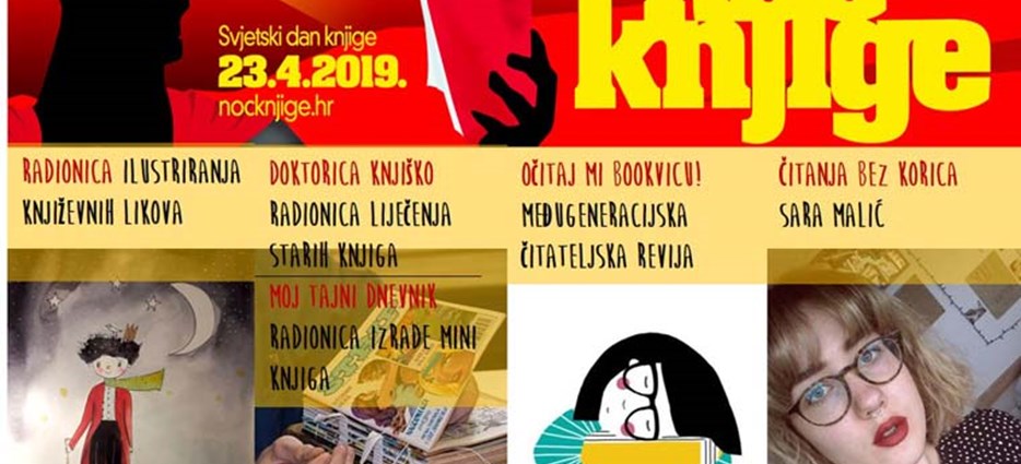 Gradska knjižnica Velika Gorica i ove godine organizira manifestaciju „Noć knjige“ na kojoj vas očekuju brojne radionice ilustriranja književnih likova, radionice izrade mini knjiga, izložbe knjiga, program Čitanje bez korica, čitateljske revije i još puno toga.