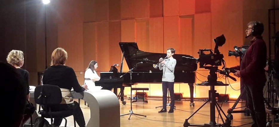 -Naš učenik trubač Stefan Gjorgiev, iz klase prof. Tomislava Špoljara, ostvario je uspješan nastup uz klavirsku pratnju prof. Ive Šoršu kao najmlađi kandidat u polufinalu Hrvatskog izbora za Euroviziju mladih glazbenika 2020.!- ponosno su se pohvalili iz Umjetničke škole Franjo Lučić.