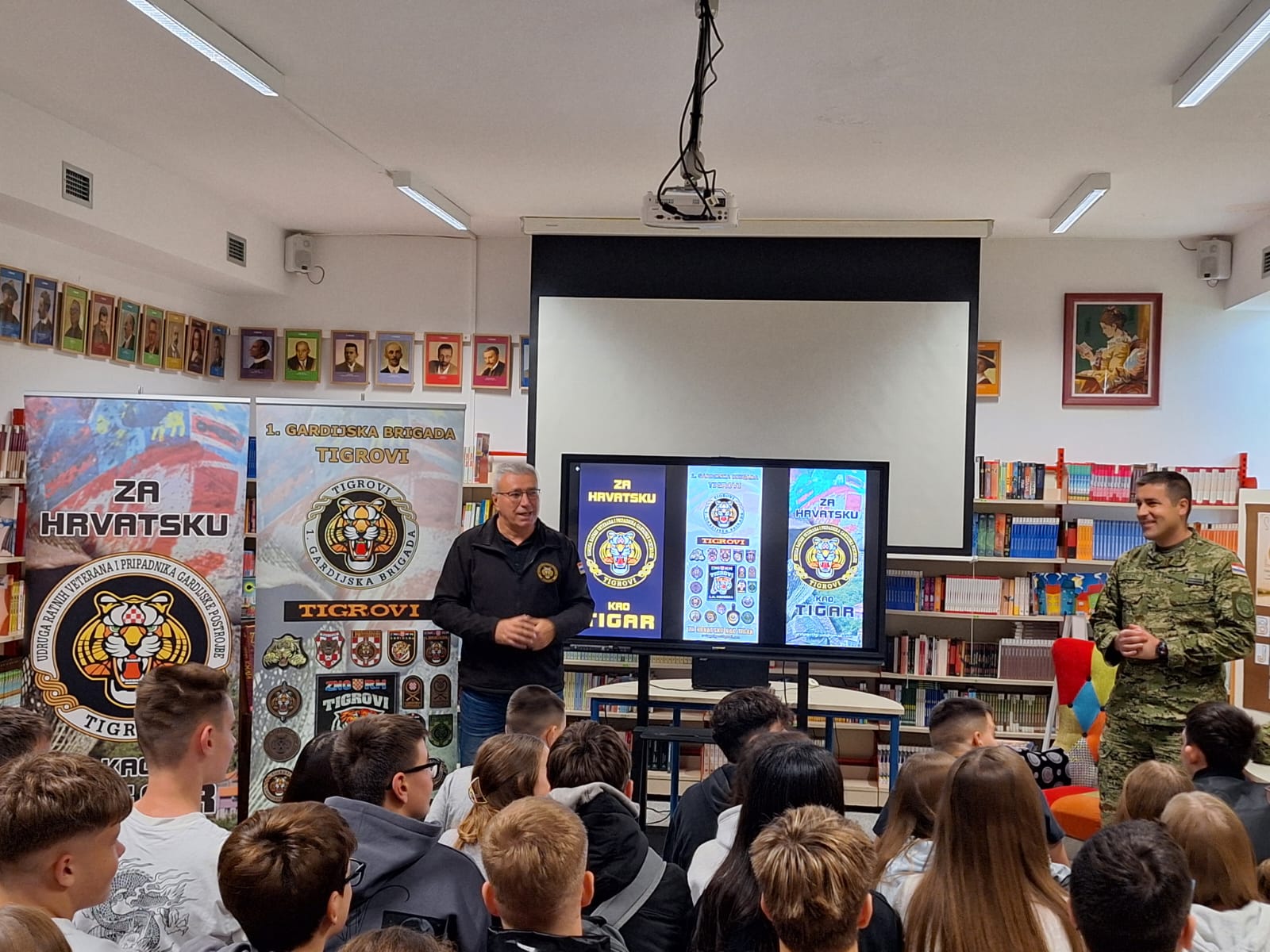 Ususret Danu sjećanja na žrtve Vukovara i Škabrnje u goste Hribarovim osmašima došli su predstavnici Udruga ratnih veterana i pripadnika gardijske postrojbe Tigrovi i pripadnici 1.mehanizirane bojne Tigrovi koji su učenike upoznali s ratnim putem postrojbe od 1991. do 1995.