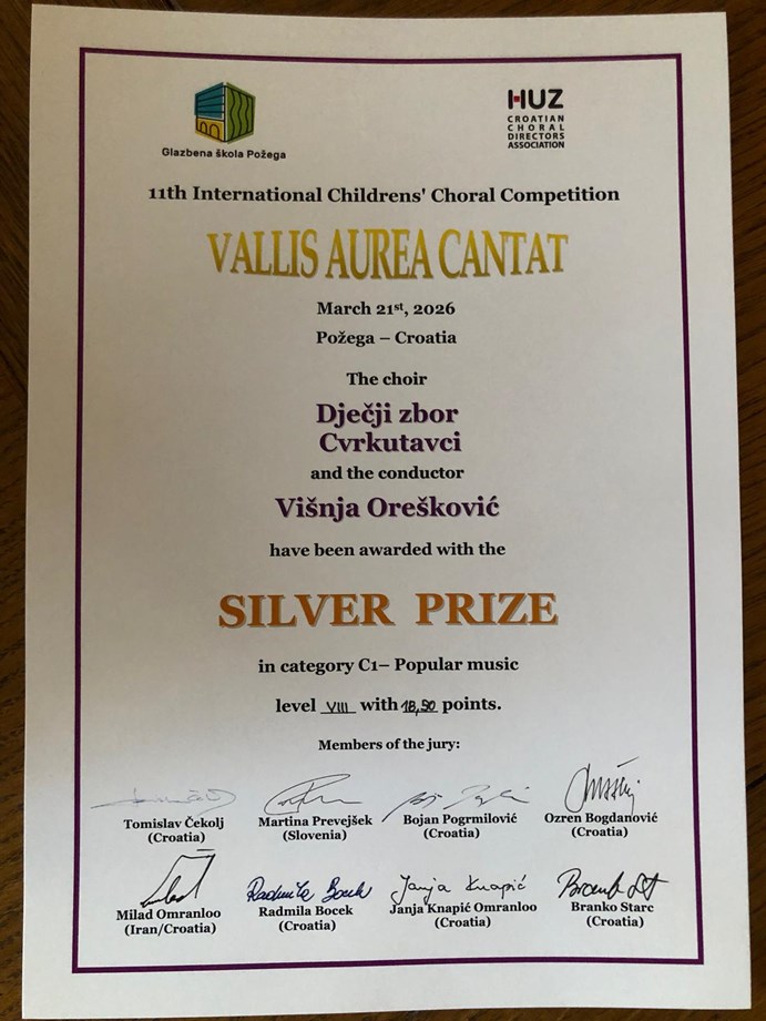 "Cvrkutavci" nastupali na međunarodnom natjecanju dječjih zborova u Požegi i osvojili srebrnu nagradu