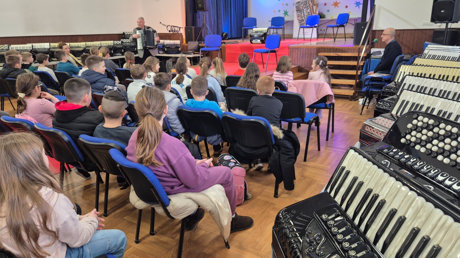 Prezentaciji su nazočili i učenici osnovne škole Mičevec sa svojim nastavnicama, gdje su imali prilike upoznati se s povijesti nastanka harmonike, dolaskom harmonike na prostore Republike Hrvatske, kao i zastupljenosti harmonike u folkloru Lijepe Naše.