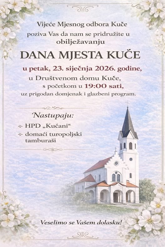 Proslava je organizirana u petak 23. siječnja od 19:00 sati u Društvenom domu Kuče uz prigodan domjenak i glazbeni program.