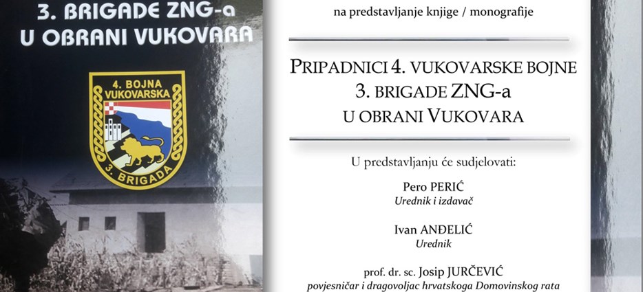Udruga 4. bojne vukovarske te 3. gardijske brigade poziva na predstavljanje monografije ‘Pripadnici 4. Vukovarske bojne i 3. Brigade ZNG-a U obrani Vukovara’.
