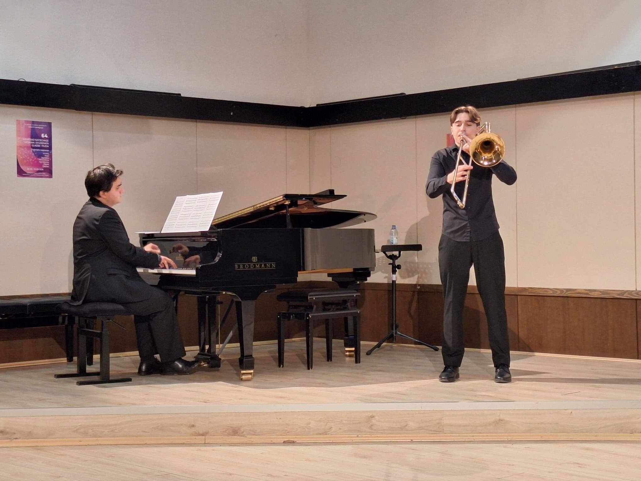 Učenik trombona Toni Požgaj osvojio je 1. nagradu (2. mjesto) s dobivenih 95.75 bodova! Za njegov sjajan uspjeh zaslužan je i njegov nastavnik Marin Rabadan.