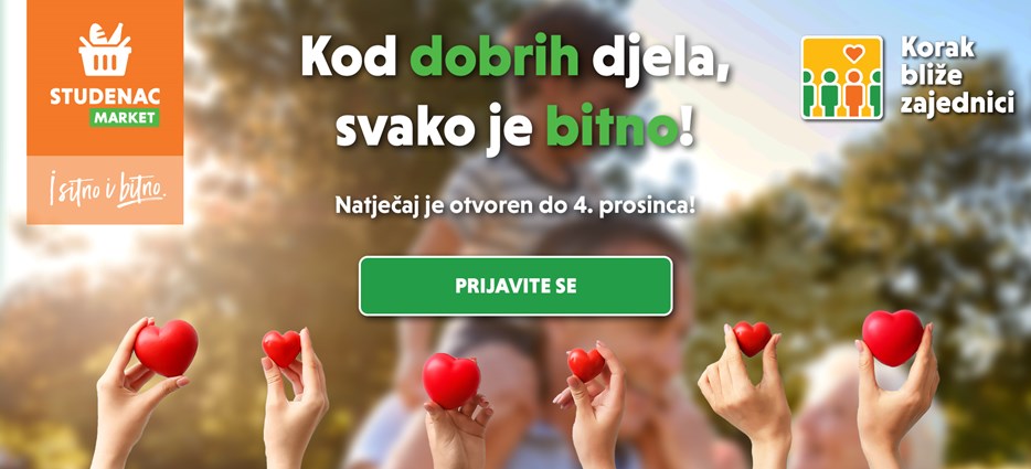 Studenac, najveći hrvatski maloprodajni lanac po broju trgovina, otvorio je treći ovogodišnji krug prijava za donacije u sklopu svojeg programa „Korak bliže zajednici“. Poziv na prijavu upućen je svim udrugama i neprofitnim organizacijama s područja Grada Zagreba te Bjelovarsko-bilogorske, Karlovačke, Koprivničko-križevačke, Krapinsko-zagorske, Međimurske, Sisačko-moslavačke, Varaždinske i Zagrebačke županije. Primarni je cilj i ovog donacijskog kruga podržati projekte koji pridonose unaprjeđenju kvalitete života i razvoju zajednice. Prijave se zaprimaju od 31. listopada do 4. prosinca putem online obrasca na web stranici Studenca.