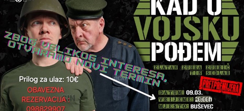 Zbog velikog interesa otvoren novi termin za predstavu "Kad u vojsku pođem" u Buševcu