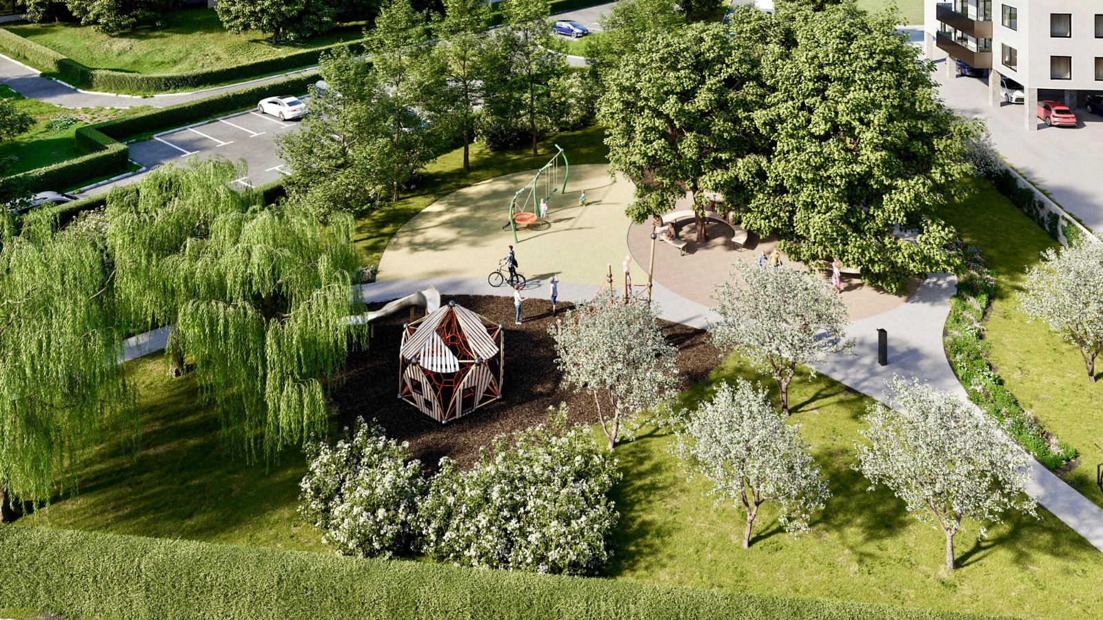 Riječ je o prostoru koji se odnosi na sjeveroistočni dio školske parcele i trokutastog je oblika, između Offertissime i školskog igrališta, a uz zonu s igralima za djecu od 3 do 12 godina, obogatit će ga pješačke staze, trg s klupama i urbanom opremom te sve hortikulturno urediti s više od 1000 biljaka.