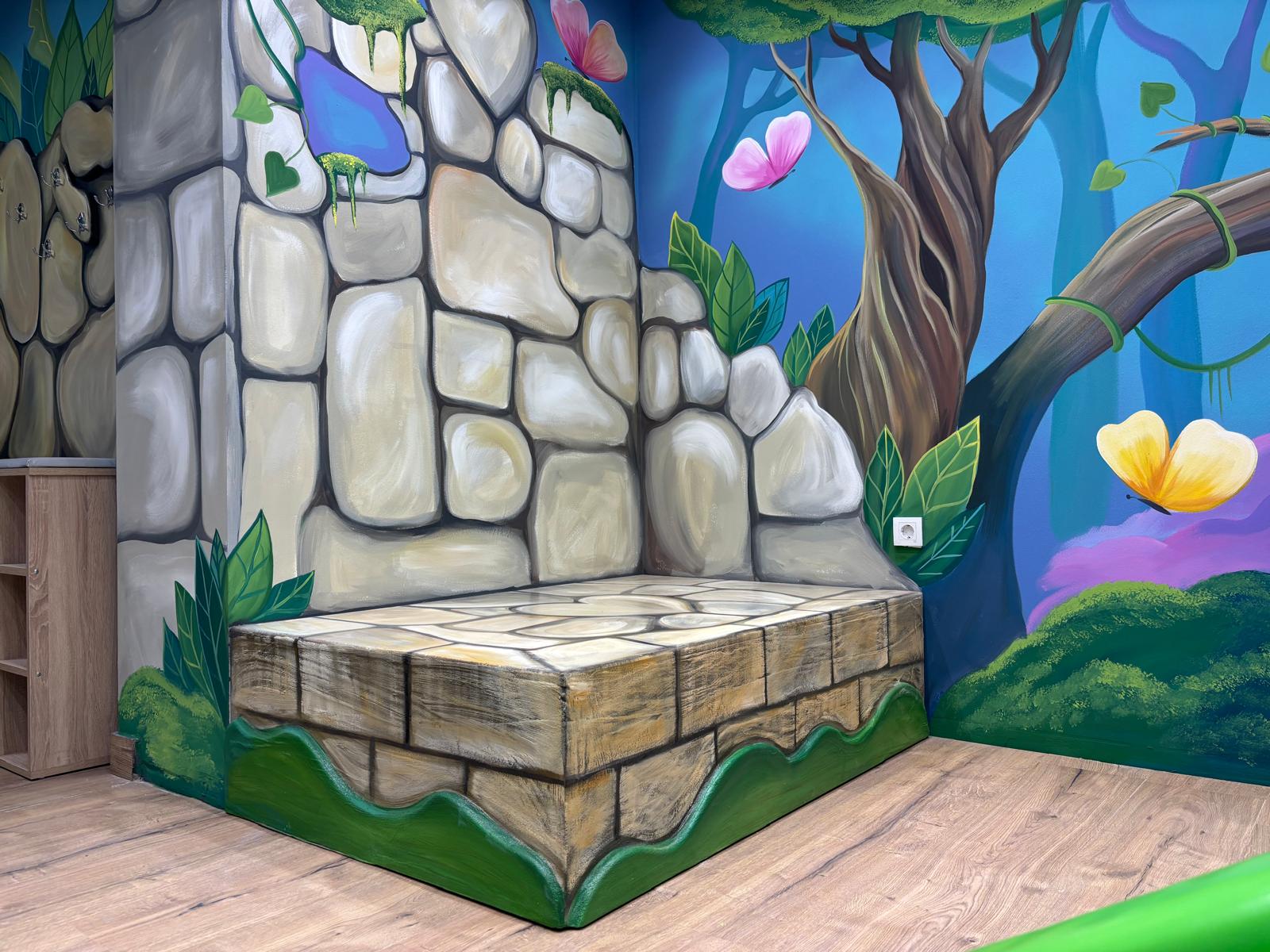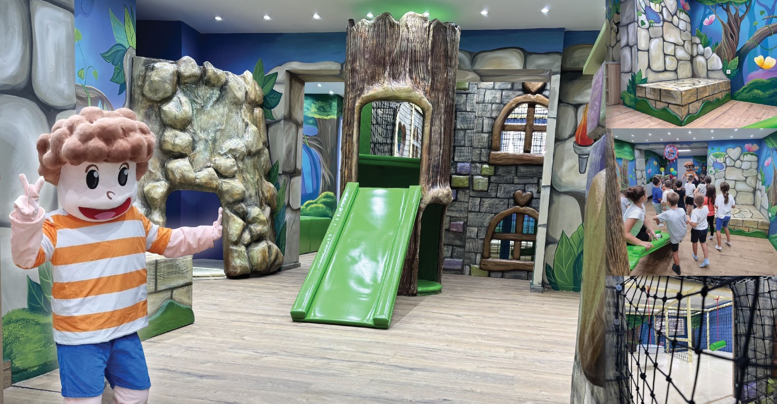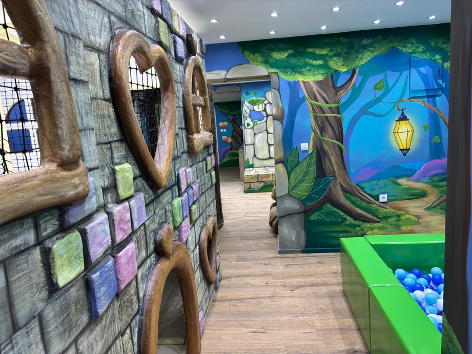 Klinci mogu juriti labirintom koji potiče snalažljivost, savladati izazov prelaska preko visećeg mosta koji budi hrabrost i ravnotežu, te otkriti čaroliju stabla koje povezuje sve atrakcije u jednu veliku pustolovinu. Prostor sadrži i mističnu spilju u koje se klinci posebno vole zavući i prepustiti igri. Poseban dah čarolije daju zidovi oslikani vještom rukom akademske slikarice. Kada te mašta odvede u šumsku idilu lakše je i zapjevati na pozornici, koju posebno vole okupirati djevojčice i dječaci.