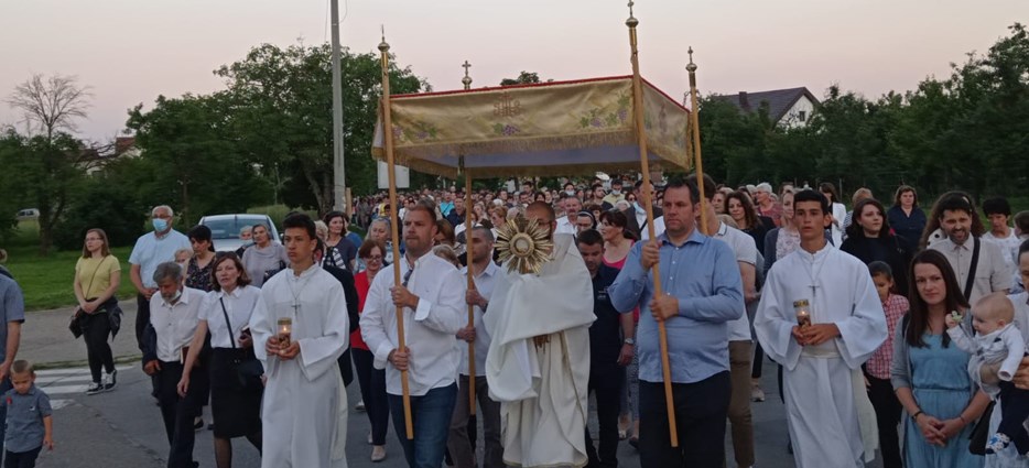 Tijelovska procesija bit će nakon svete mise koja u 18,30 počinje ispred crkve Navještenja BDM. Pocesija će ići prema župi Sv. Petra i Pavla gdje će biti svečani završetak. Danas je i cjelodnevno euharistijsko klanjanje.