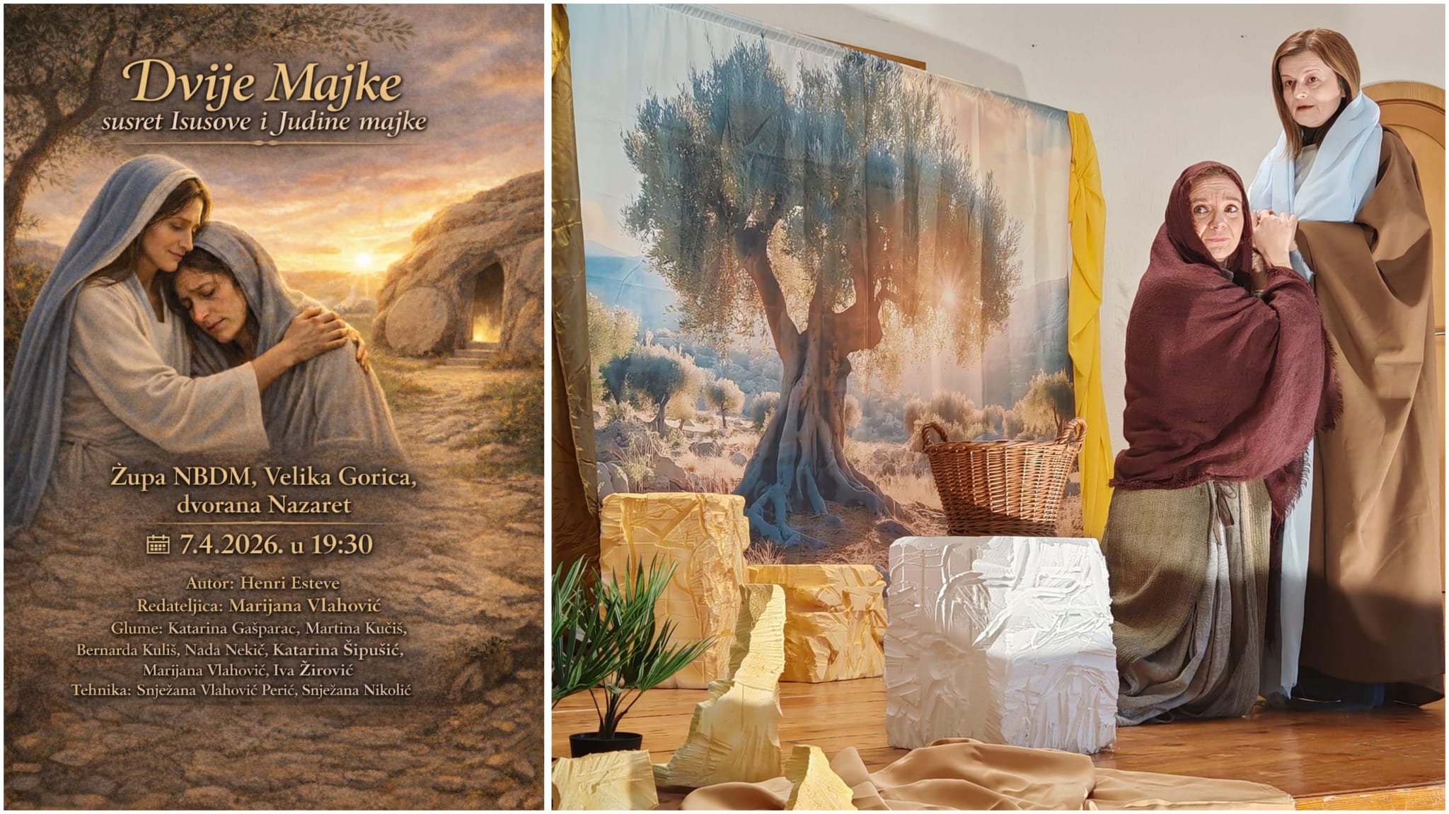 Riječ je o snažnom dramskom djelu koji progovara o susretu dviju biblijskih žena Isusove i Judine majke. Priča je to o boli, oprosti i nadi, a publici je donose članice župne zajednice koje za ovu prigodu prvi put staju na kazališne daske.