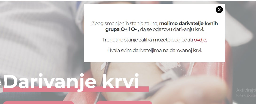 Iz Zavoda za transfuzijsku medicinu posebno pozivaju građane koji imaju krvnu grupu 0- i 0+ da se odazovu aktualnim akcijama jer su smanjene zalihe navedenih krvnih grupa, premale su zalihe i B negativne krvne grupe.
