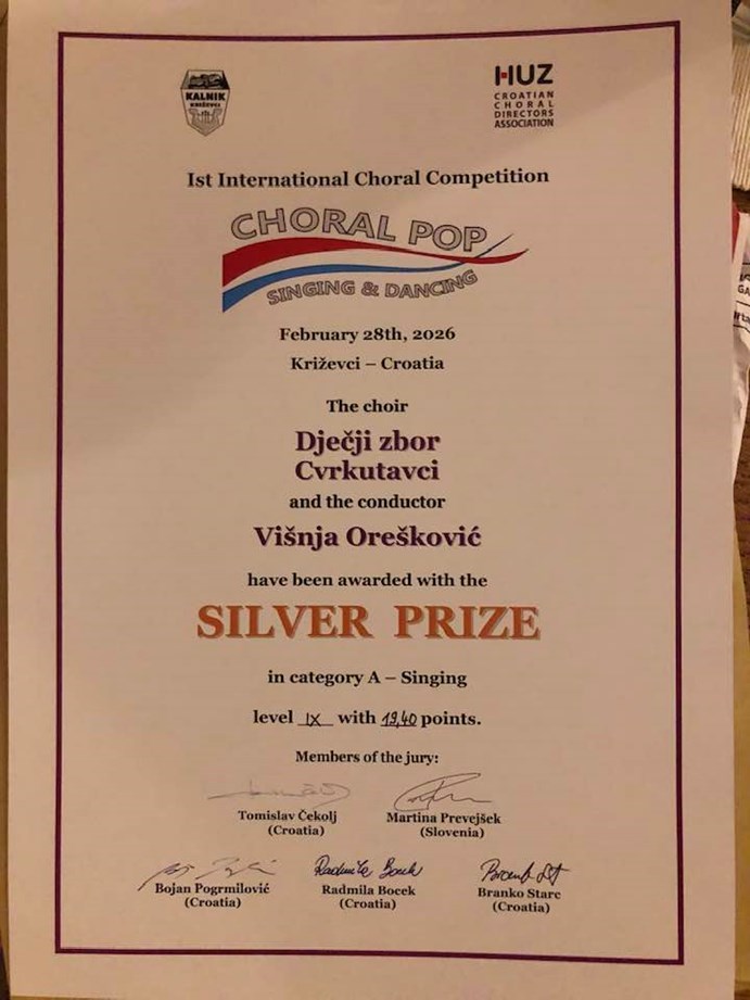 Cvrkutavci osvojili srebro na 1. međunarodnom natjecanju Choral Pop Singing & Dancing u Križevcima
