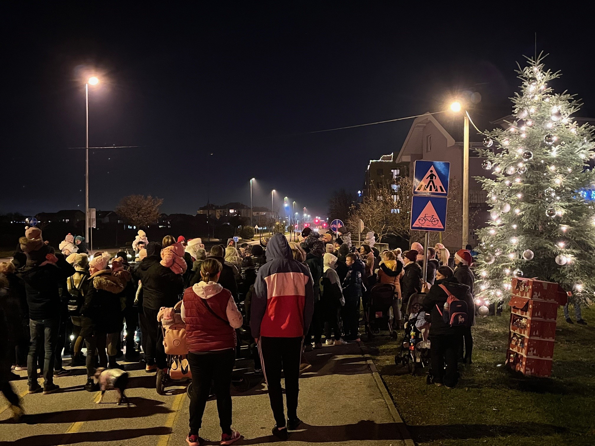 Dan kasnije Djed Božićnjak iznenadio je male Kurilovčane okupljene oko ukrašenog bora u Lomničkoj ulici.