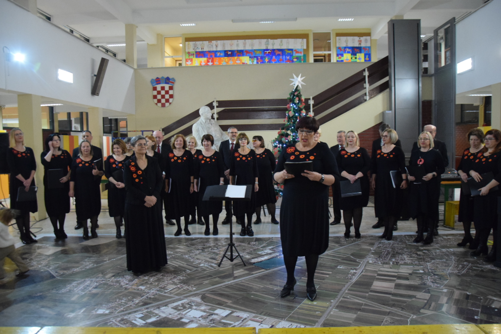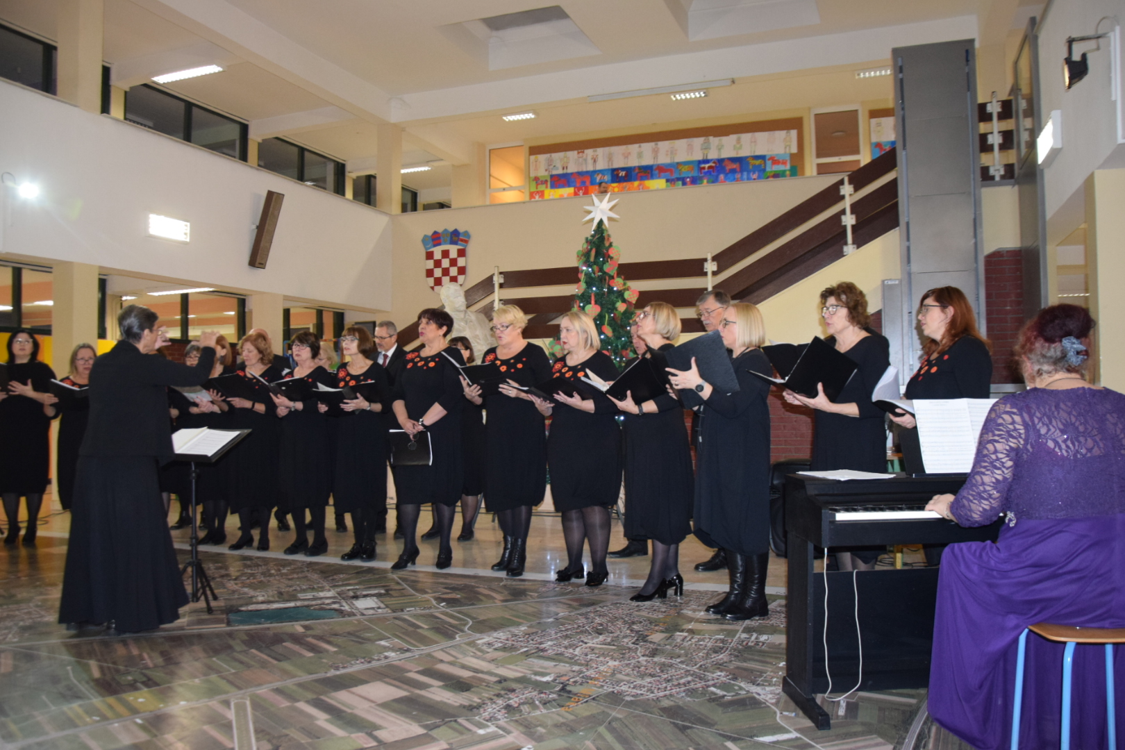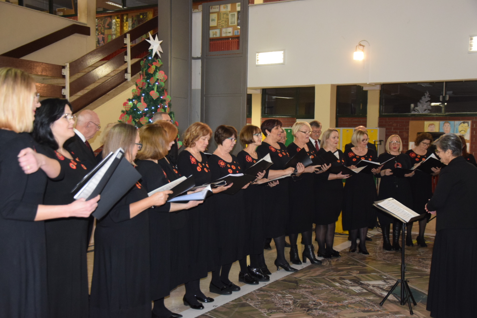 Pod vodstvom dirigentice prof. Dubravke Veliki, i uz pratnju na klaviru prof. Marijane Komljenović članovi gradskog zbora uveli su okupljene u pravo božićno raspoloženje s pjesmama koje imamo prilike čuti na zornicama, i onima koje ćemo pjevati na sam Božić.