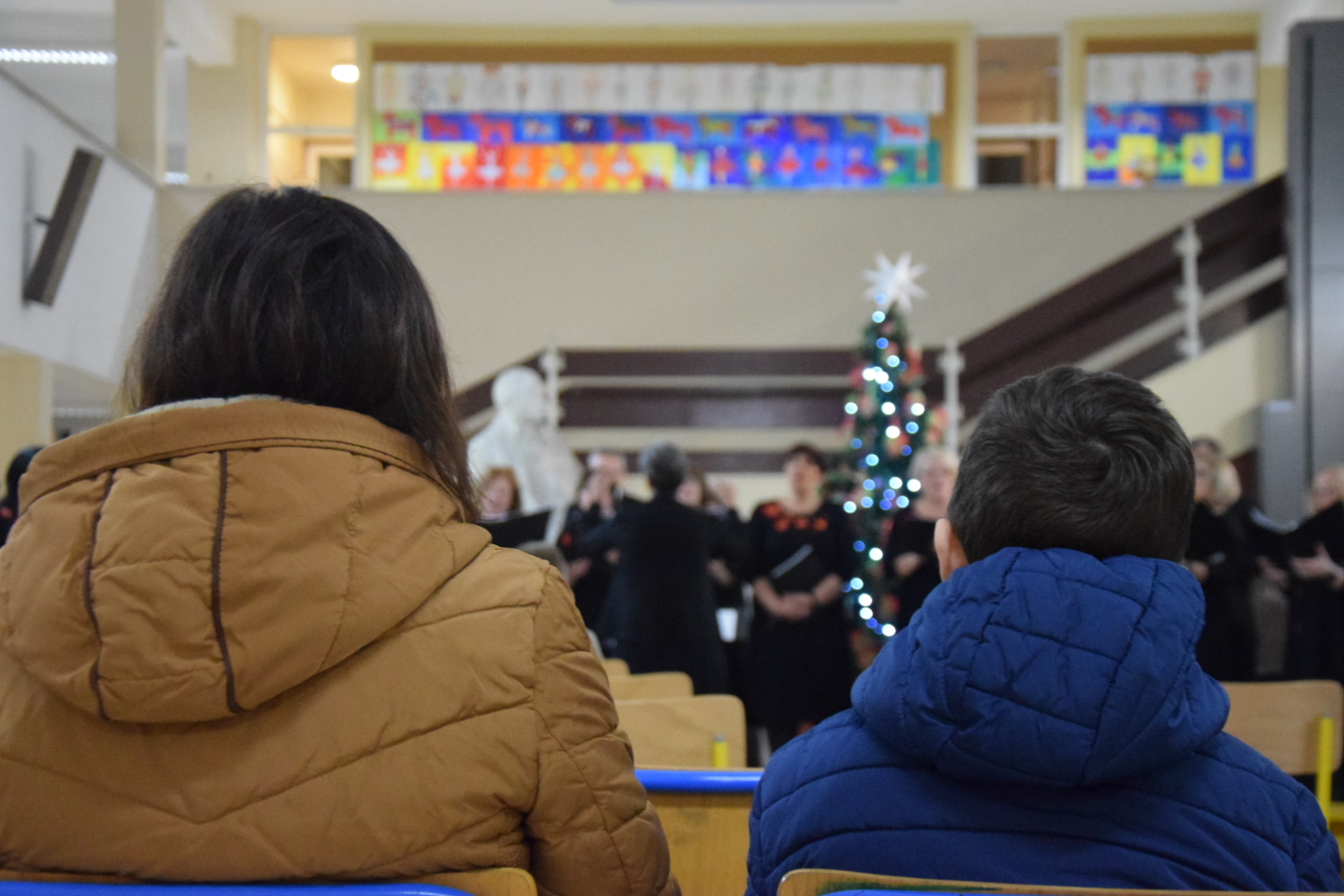 Visom leteć ptice male, Adeste fidelis, Mehki snežek, Spavaj mali Božiću, Veseli se Majko Božja, Joy to the world...dio su sinoćnjeg programa kojeg je Gradski zbor pripremio na koncertu koji je ujedno bio poklon OŠ Eugena Kumičića gdje inače održavaju svoje probe.