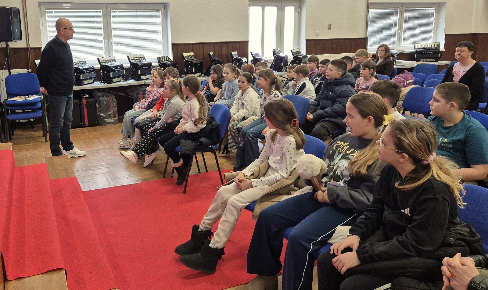 Prezentaciji su nazočili i učenici osnovne škole Mičevec sa svojim nastavnicama, gdje su imali prilike upoznati se s povijesti nastanka harmonike, dolaskom harmonike na prostore Republike Hrvatske, kao i zastupljenosti harmonike u folkloru Lijepe Naše.