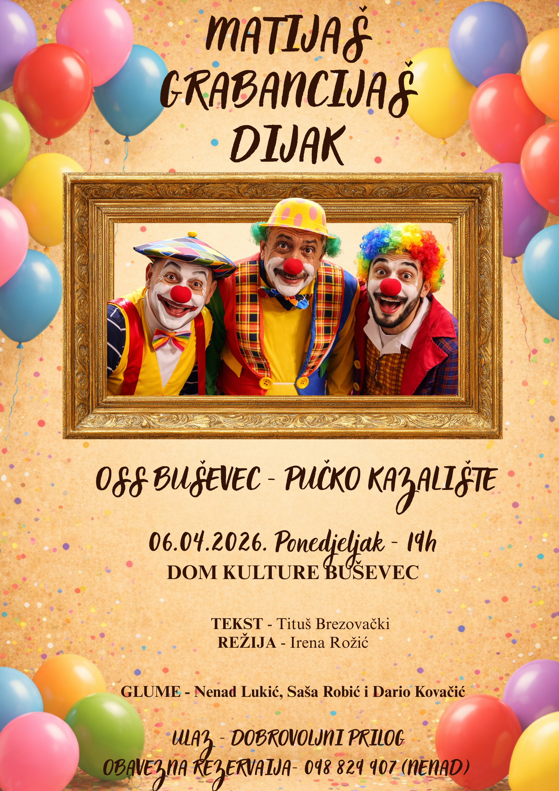Premijera nove predstave Pučkog kazališta Ogranka Seljačke sloge Buševec “Matijaš grabancijaš dijak” održat će se u Domu kulture Buševec u ponedjeljak, 6. travnja 2026. u 19 sati.
