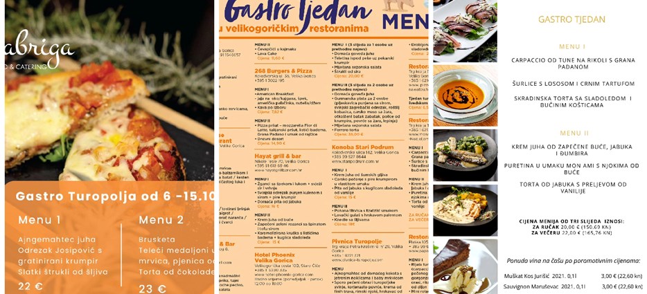 Gastro tjedan traje od 6. do 15. listopada tijekom kojeg u 12 goričkih restorana i pizzeria možete birati između dva posebno kreirana menija po promotivnim cijenama. Svaki meni ima tri slijeda, predjelo, glavno jelo i desert, a psotoji i mogućnost menija/plate za dvije osobe u pojedinim restoranima.