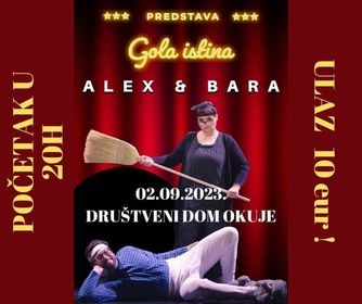 -Dođite u društveni dom Okuje na najbolju predstavu poznatog stand up komičara Aleksandra Lazića i njegove svjetski poznate Bare! Ne propustite jedinstveni uvid u bračno stanje ovog trenutno najpopularnijeg bračnog para u Hrvata i šire-pozivaju iz Okuja.