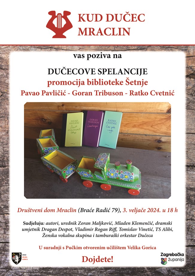 Uz autore u programu će sudjelovati i Dragan Despot, Vladimir Rogan Riff, Tomislav Vinetić, TS Alibi, Ženska vokalna skupina i tamburaški orkestar Dučeca, pa vjerujemo da će publika u Mraclinu i ovoga puta uživati u riječi, pjesmi i druženju na Dučecovim spelancijama.