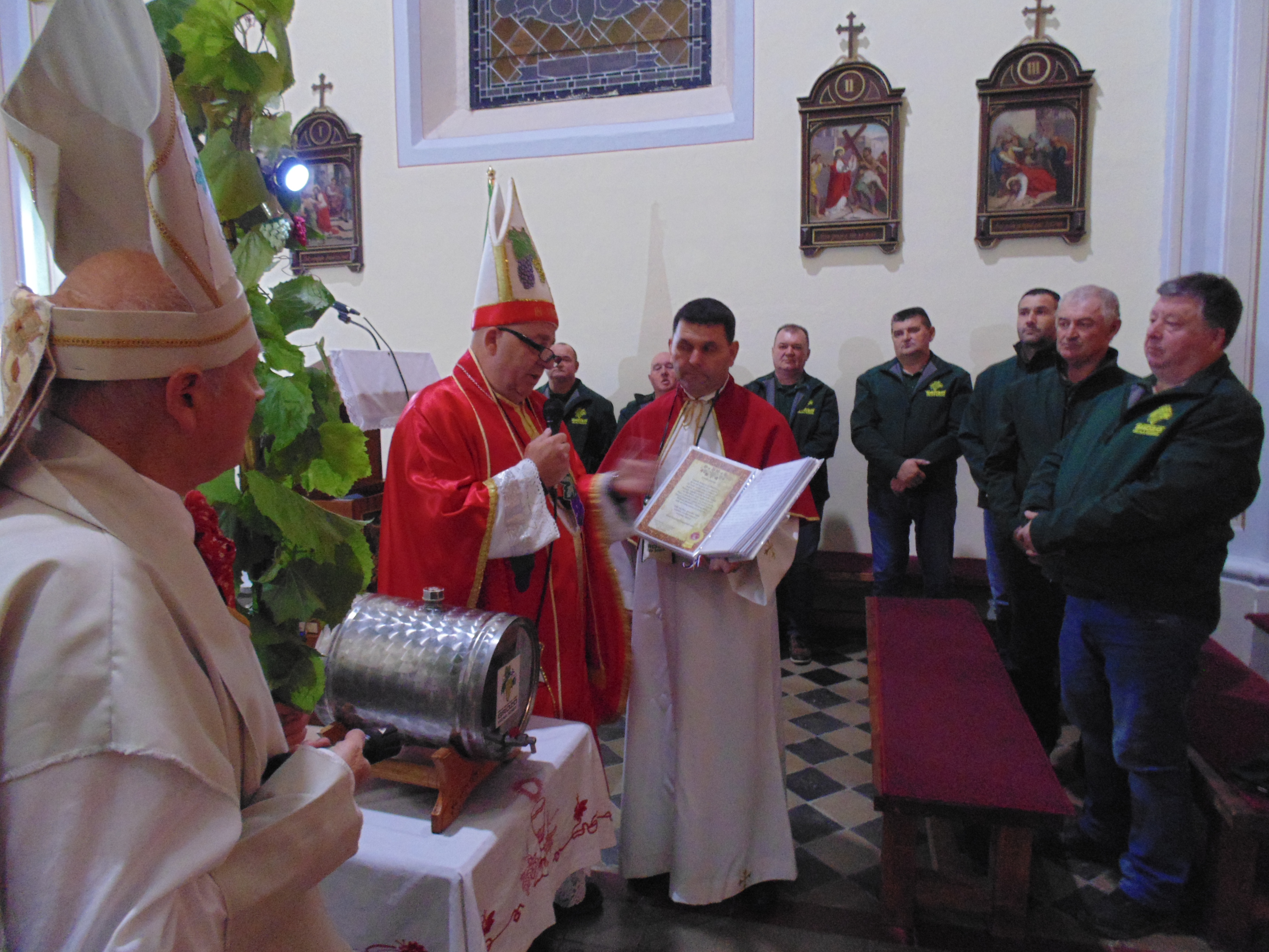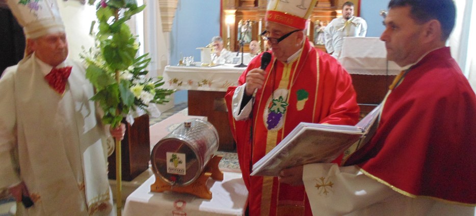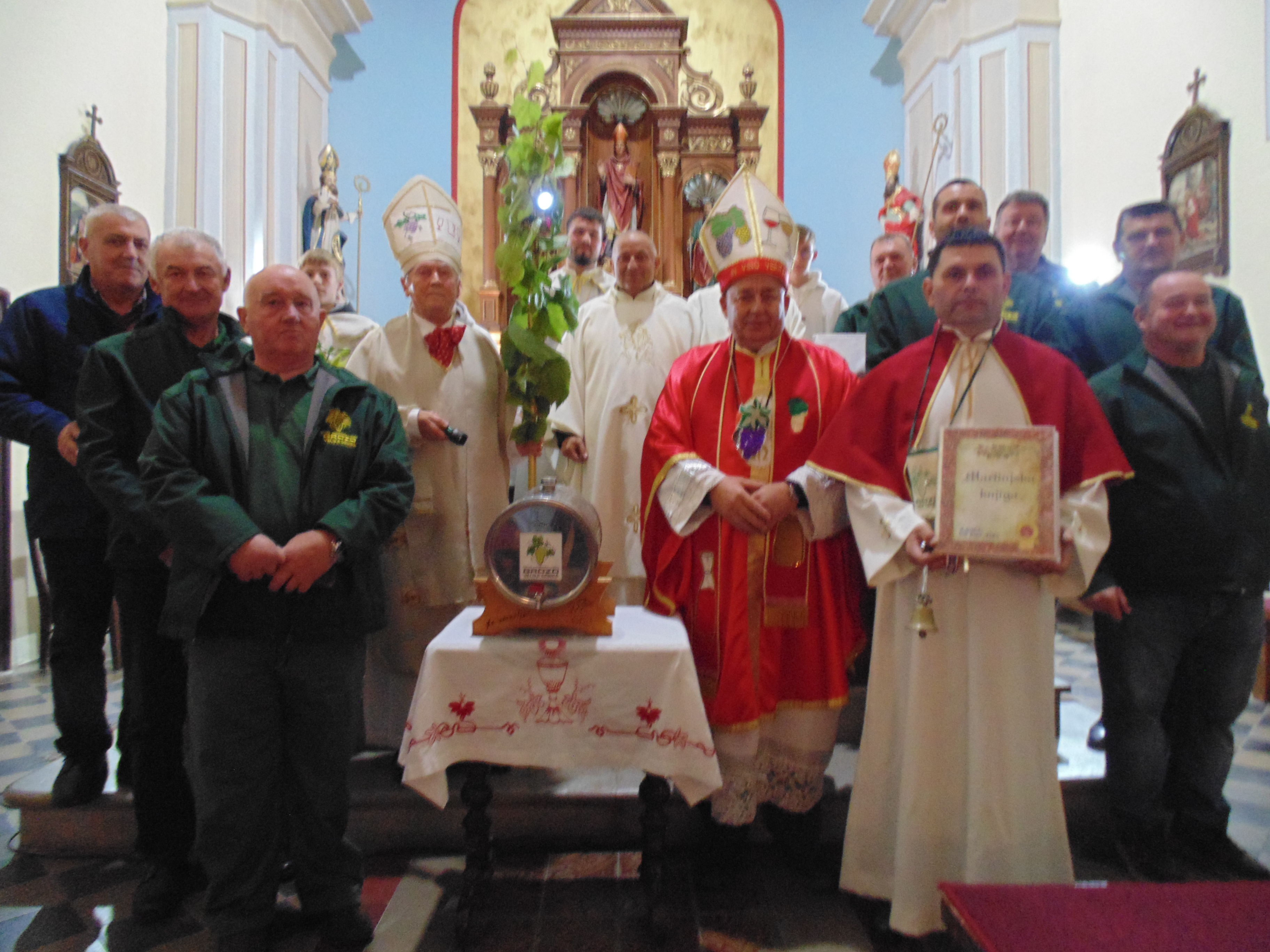-Nakon toga po prvi puta u crkvi ispred oltara upriličen je kratki ceremonijal prevođenja mošta u vino Grozdovih certificiranih meštara martinjskog ceremonijala vinskih biskupa Martina turopoljsko-vukomeričkog Ivice Milkovića i Stivena kobilinskog Stjepana Viteza. Na samom kraju domaćin župnik župe Sv. Martin Ščitarjevo, velečasni Stjepan Tenšek i duhovnik Udruge vinogradara i vinara Grozd uputio je zahvalu svim sudionicima svečanog misnog slavlja-javljaju iz Udruge.
