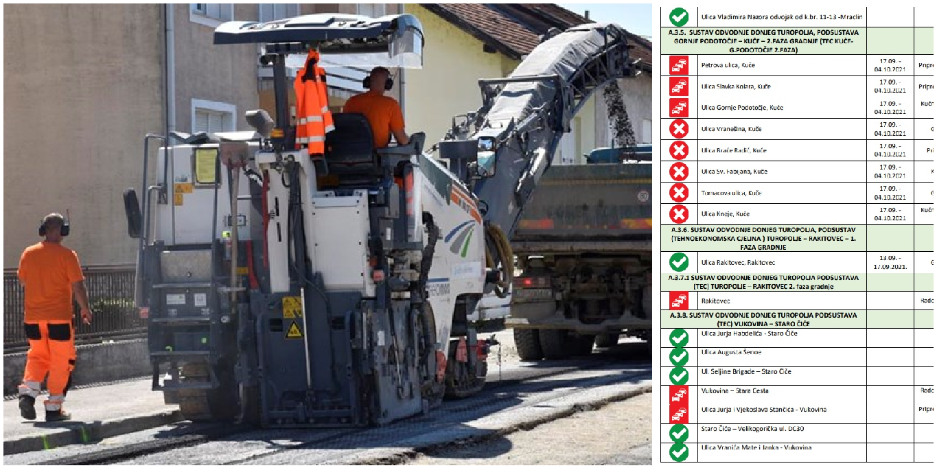 Pristigao je plan radova za sljedeći tjedan, od 20. do 24. rujna za projekt „SUSTAV ODVODNJE I PROČIŠĆAVANJA OTPADNIH VODA AGLOMERACIJE VELIKA GORICA“, zaprimljen od Izvođača radova na Aglomeraciji Velika Gorica.