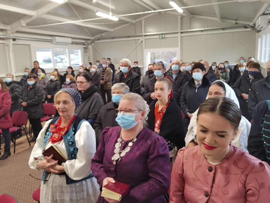 Biskup Košić tijekom mise je i blagoslovio prostor te je ohrabrio vjernike koji su ostali bez svoje crkve, koja je u potresu teško oštećena, pozvavši ih na strpljivost jer dok se župna crkva bude obnavljala imat će ovu dvoranu gdje će se moći okupljati.