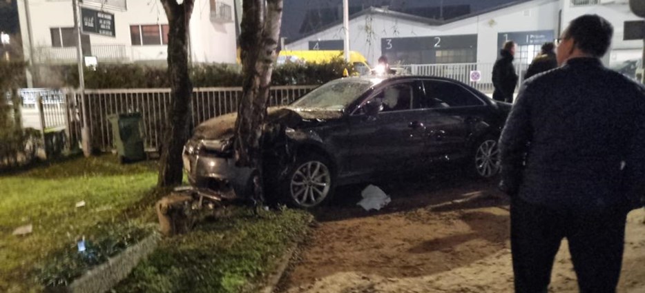 Večeras je na križanju Zagrebačke ulice i Ulice Slavka Kolara došlo do prometne nesreće kod Robne kuće u kojoj je automobil marke Audi izletio s kolnika, te preko nogostupa za pješake uletio u dvorište caffe bara Scotch.