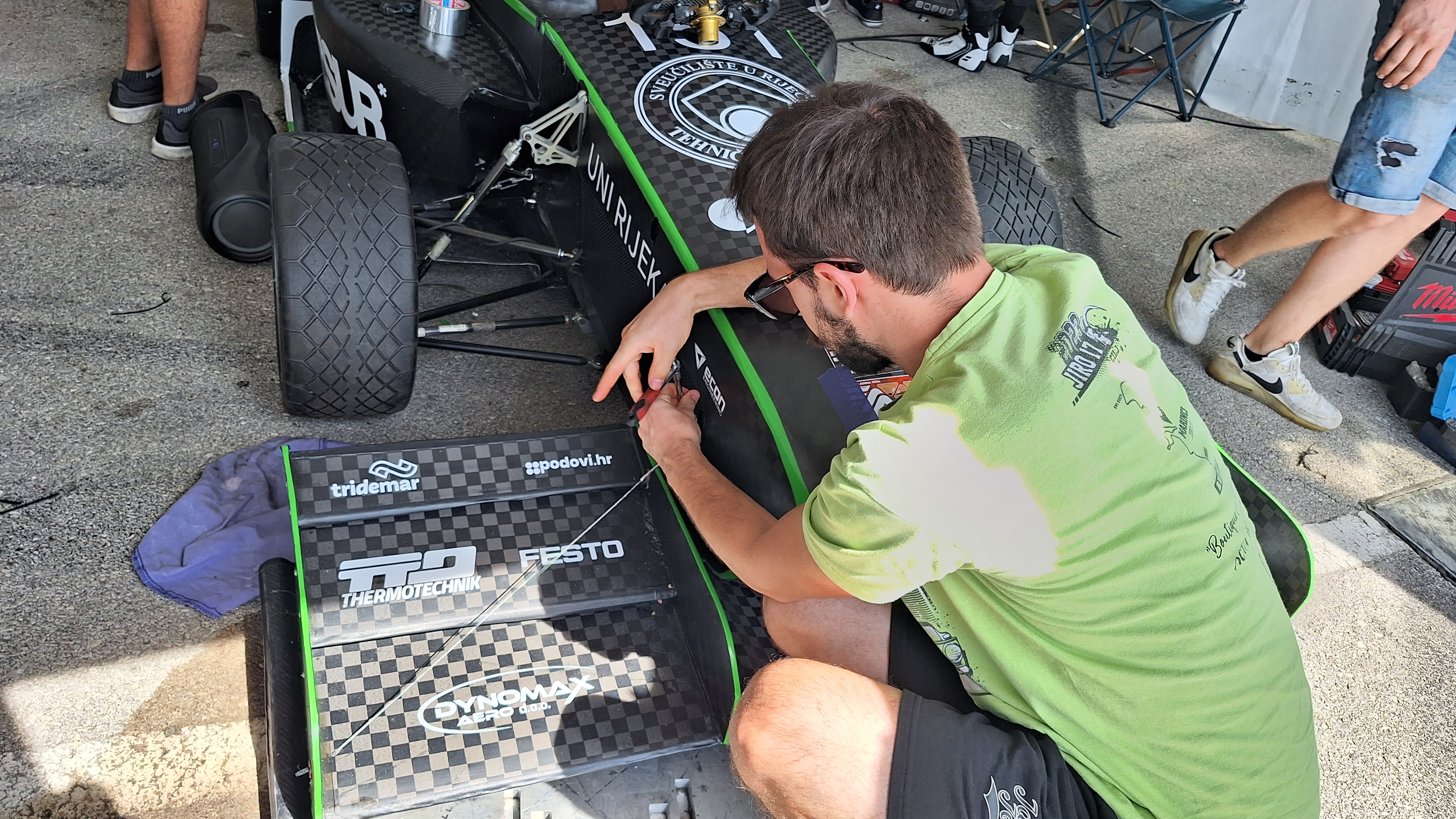 -Ovo je rekordna godina jer smo uspjeli napraviti bolid od nule u godini dana, što je veliki izazov ne samo za nas jer smo mi relativno maleni tim, ove godine obaramo rekorde, do sad je sezona dobro protekla. U timu nas je 54, na natjecanju je 34 jer nisu svi mogli doći. Uz ovako ogroman projekt imamo mi i studentske obaveze, neki i rade – kaže nam Filip stoga ukomponirati sve obaveze nije lako.