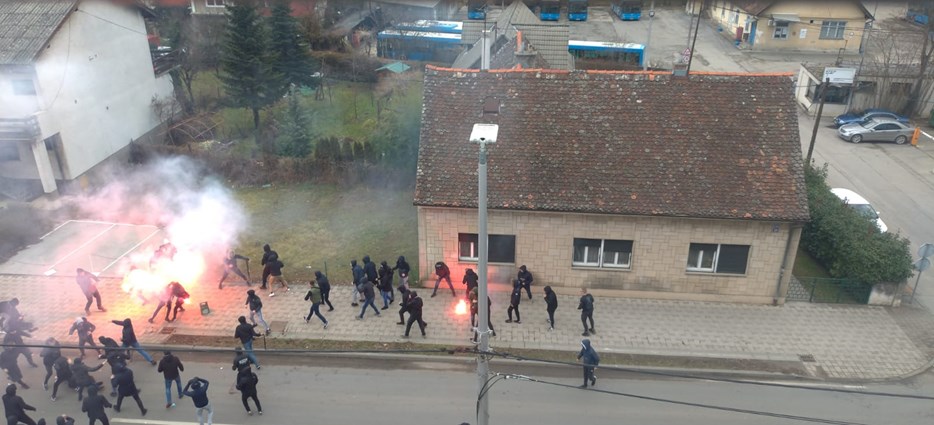 Na ulicama grada danas zastrašujući prizori. Oko 14 sati veća skupina muškaraca se potukla, palila baklje i gađala se međusobno bocama i raznim predmetima.