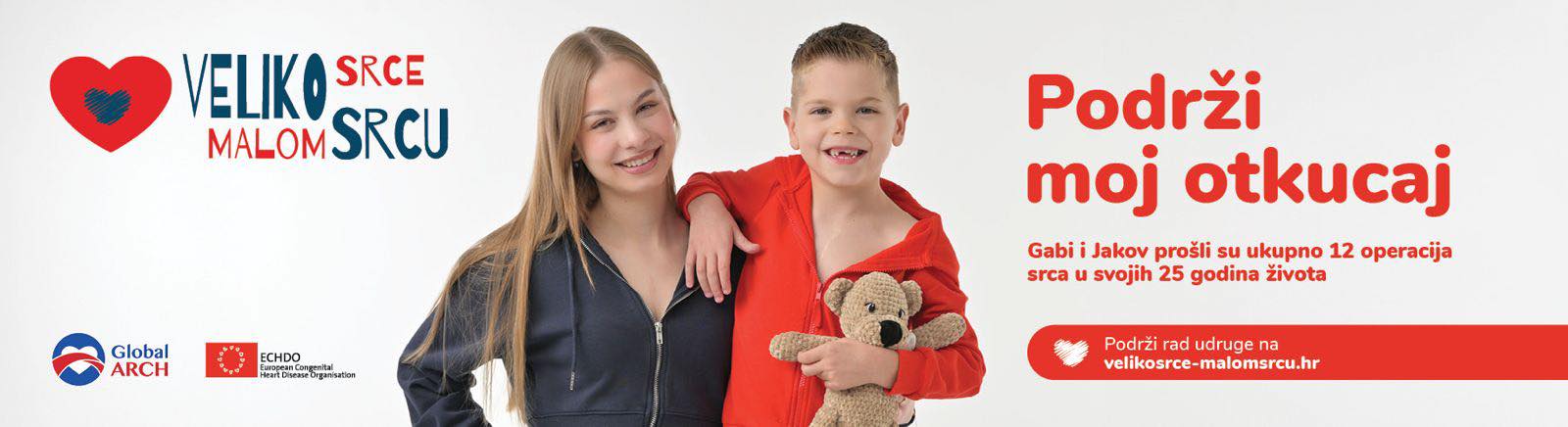 Jakov i Gabriela upoznali su se kroz Udrugu Veliko srce malom srcu koja okuplja djecu s urođenim srčanim greškama, njihove roditelje, ali i zdravstvene djelatnike. Njih dvoje, svak sa svojom borbom, zaštitna su lica ovogodišnje kampanje u Svjetskom tjednu djece s prirođenim srčanim greškama.