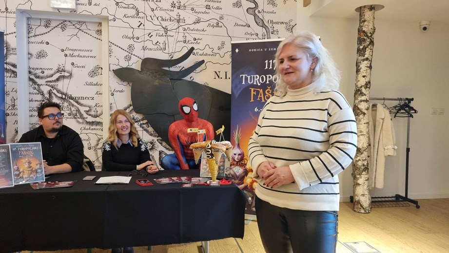 Program 117. Turopoljskog fašnika u prostorijama Turističke zajednice, organizatora manifestacije, predstavili su direktorica TZVG Maja Toth i suradnici Iven Masten ispred organizatora Geek Cona te učiteljica Marija Patrlj iz OŠ Nikole Hribara koja je govorila o pripremama osnovnoškolaca za maškare.