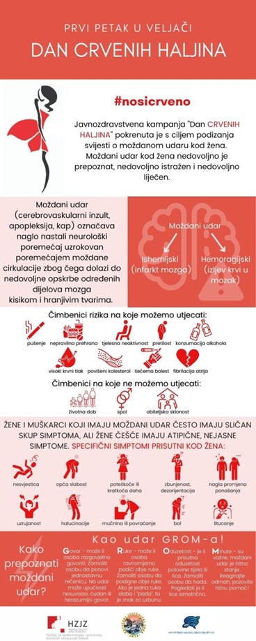 Dan je crvenih haljina, globalne javnozdravstvene akcije koja se održava prvog petka u veljači, a pokrenuta je kako bi se podigla svijest javnosti o specifičnostima moždanog udara kod žena te skretanje pažnje na pogubne posljedice zanemarivanja simptoma i na nužnu potrebu promjene načina života. Naglašena je prevencija bolesti srca i krvnih žila kroz usvajanje zdravih životnih navika.