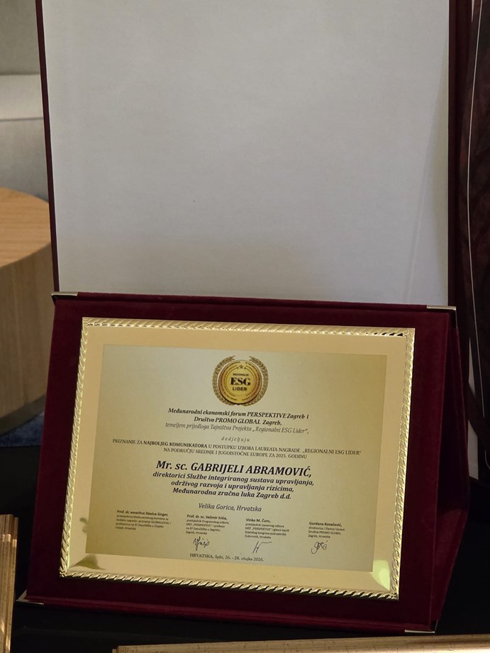 Ova priznanja potvrđuju da Međunarodna zračna luka Zagreb dosljedno primjenjuje visoke standarde transparentnosti, etičnog poslovanja i odgovornog donošenja odluka. ESG principi integrirani su u sve segmente poslovanja te predstavljaju temelj dugoročne strategije i održivog razvoja.