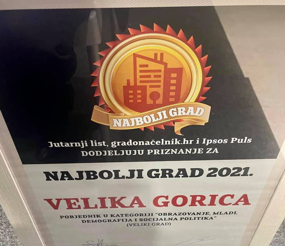 Velika Gorica izabrana je za najbolji veliki grad u kategoriji “Demografija, obrazovanje, mladi i socijalna politika”.