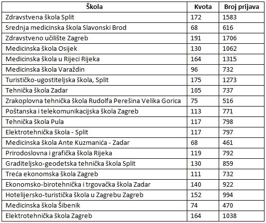 U Hrvatskoj inače ima 309 strukovnih škola, a na ljestvici onih za koje je bio najveći interes ZTŠ je na visokom devetom mjestu.