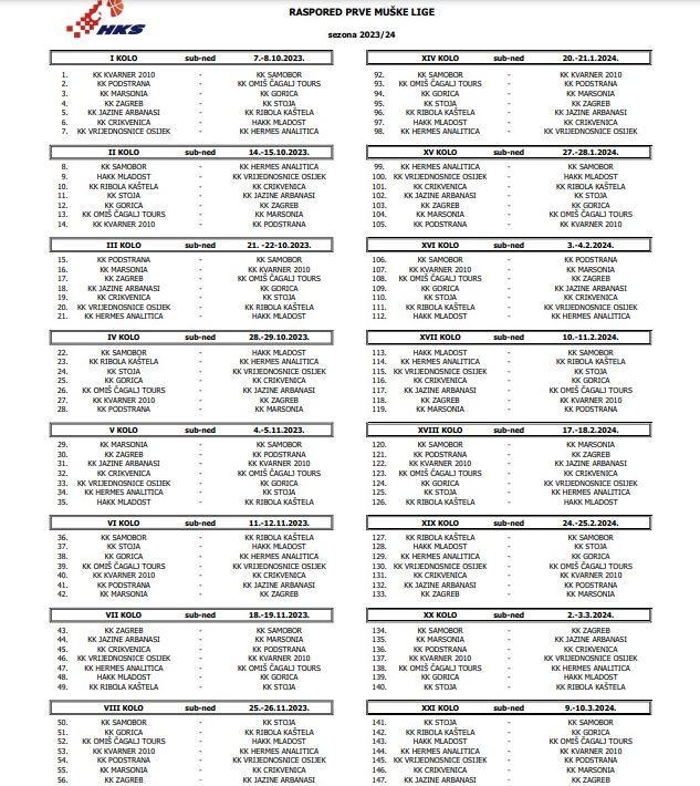 Prvo kolo je na rasporedu 7. listopada, a osnovni dio natjecanja završava 26. kolom, 20. travnja iduće godine.