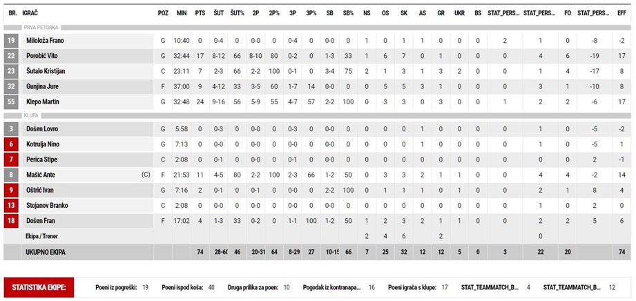 Nastup Simona bio je upitan, ali na kraju predvodio domaće s 24 koša, pet skokova i tri asistencije. Identičan učinak od 24 poena je u goričkim redovima imao Martin Klepo, Vito Porobić dodao je 17 koševa i sedam skokova.