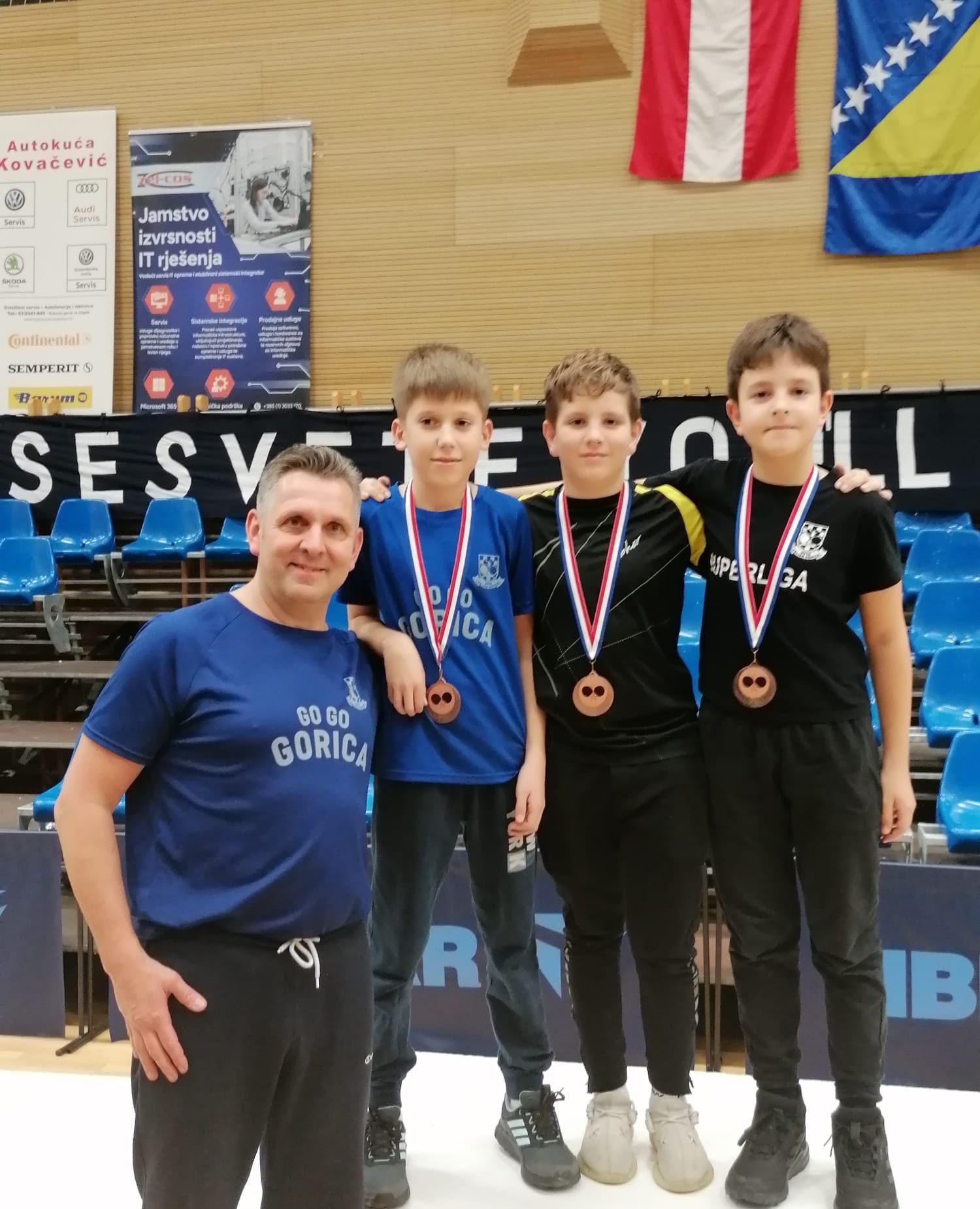 Naravno, istaknuli su se ove godine i naši Velikogoričani, i to u konkurenciji mlađih kadeta. U ekipnom dijelu natjecanja u svojoj kategoriji osvojili su treće mjesto i brončanu medalju! HSTK Velika Gorica i naš grad su predstavljali Petar Knežević, Pavel Ljubek i Josip Pavlinić, a ponosan je bio i njihov trener, Marko Habijanec.
