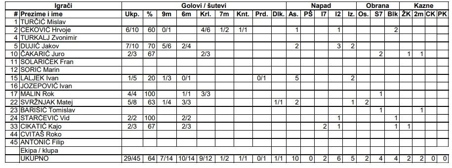 Napad Gorice je sa sedam golova predvodio Jakov Dujić, dok je Ceki dodao šest. Matej Svržnjak precizan je bio pet puta, Rok Malin je dodao četiri komada.