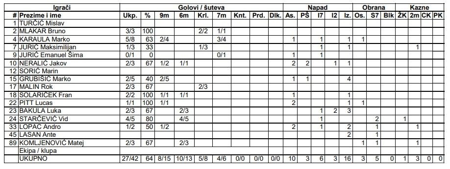 Kod Gorice je najviše zabio Marko Karaula, koji je pet puta bio precizan, dok je Vid Starčević zabio četiri gola. Marin Sorić imao je pet, a Mislav Turčić tri obrane.