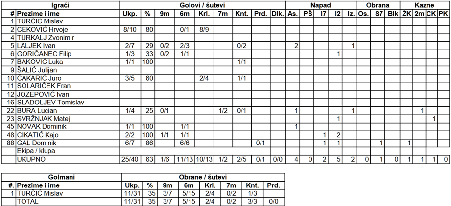 Briljirao je kapetan Hrvoje Ceković s osam golova, uz tek dva promašaja, a priključio mu se i Dominik Gal, koji precizan bio šest puta iz sedam pokušaja. Odličan posao odradio je i Mislav Turčić s 11 obrana.